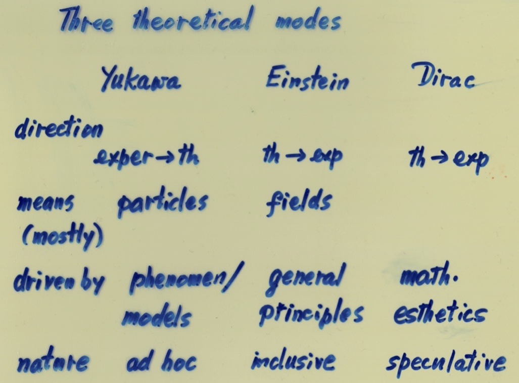 1997年5月に大阪大学RCNPで開催された qulen97 会議でのopening talkのメモとスライド。資料は散在していた。南部は参加者の中では最年長者でそれまでの物理の発展を振り返る。ここでも「3つの発展段階」と「3つの理論屋のタイプ」に言及する。 (OU-paper-C6, 7 pages)