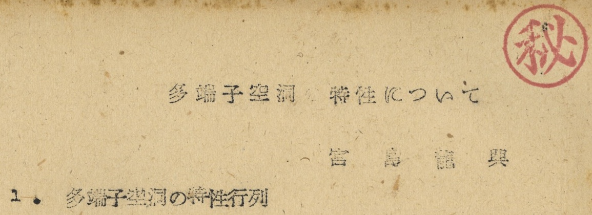 宮島龍興による「多端子空洞 特性について」。史料「立体回路」については カテゴリ:レーダー の説明を参照されたい。(OU-radar-E11, 23 pages)
